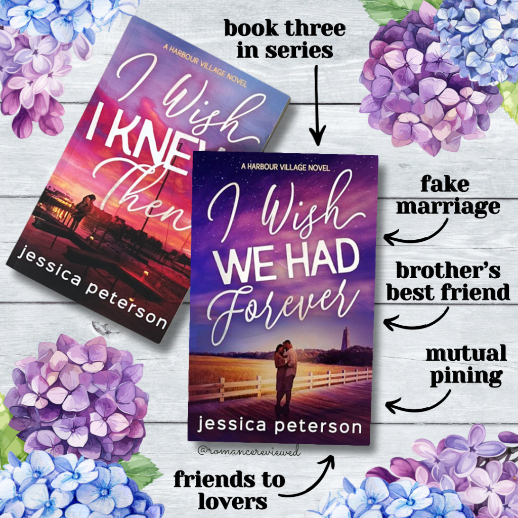 Happy Thursday! I Wish We Had Forever released today. I received an ARC in exchange for an honest review. I really enjoyed this small town, brother’s best friend, fake marriage romance! We found out at the end of I Wish You Were Mine that Jen and Abel had eloped and now we get to see what happened from their point of view. I was so excited to find out what happened and it did not disappoint! Abel’s my favorite kind of MMC, he’s grumpy, broody, protective, and a bit broken but still soft for his lady. And man did he have a dirty mouth on him! Jen was a great FMC, she’s strong and I loved watching her to learn to stop people pleasing and ask for what she wants. They were such a cute couple, I loved how supportive they were of each other, and I loved all the chemistry between them after years of longing and pining. It’s a Jessica Peterson book so of course it’s super spicy, with lots of food and friendships as well. I’m sad this series is over, I’ve loved every book including this one!